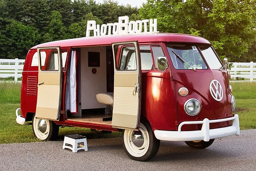 Ruby is a lovingly-restored, Ruby Red, 1962 VW bus that has been converted into a rolling photo booth. Like our traditional, vintage-style photo booths, guests sit down inside, close the curtain, and push a button to have their pictures taken. Two identical strips of three, high-quality, glossy photos (black and white or color, and customizable to include text) print out in seconds in the back hatch of the bus. More at rubythephotobus.com.