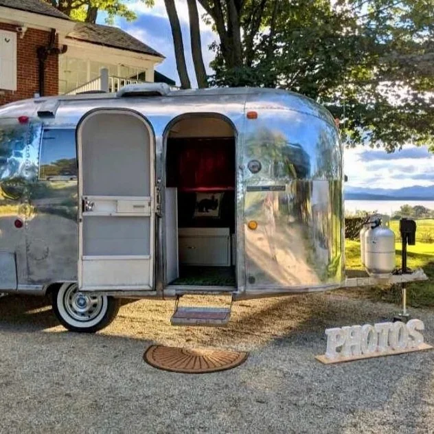 This shined up and restored aluminum Photo Booth takes “glamping” to a new level, combining fun booth bonding in a cool, retro vehicle that delights everyone who steps in.